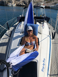 Koser oss i solen ombord, og får tatt en tur på øya. Nyter deilig skalldyr utover kvelden.