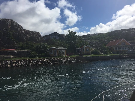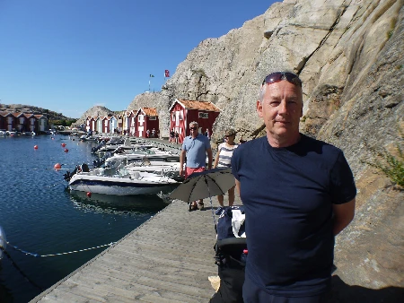En nydelig dag og reiser til Smögen. Blir tur gjennom Hamburgsund og Sota kanalen hvor Terje står og vinker til oss.