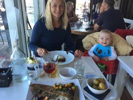 Dag 2 kommer vi oss til legen med Olivia. Får oss en deilig fiskelunch, og ikke minst en tur i båtbutikken - og selvfølgelig får vi tatt noen flere cacher!