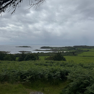 Er en lang fjord utover, men fascinerende landskap på veien. Fjell og daler og flere indre fosser ned langs dalsidene, så noen mindre øyer med noen slott ruiner, og over alt veldig grønt og frodig. Landskapet passer egentlig til at det er litt overskyet og litt tåke mellom fjellene og i dalene.