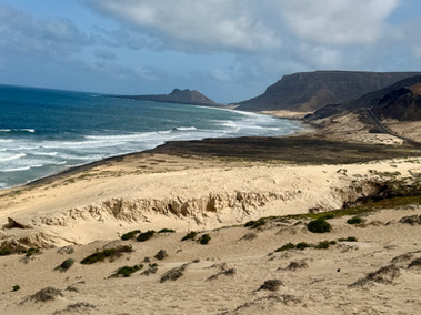 Turen er arrangert av ARC, og er noe som ligger i påmeldingen vår. Skal innrømmes at vi ikke har de største forhåpningene, men blir snart meget positivt overrasket. Starter vår tur til høyeste fjellet på øya som er litt over 750 meter. Det snirkles oppover på trange veier med brostein med stup ned på siden. Er der egentlig for utsikten, men det er dessverre tåke i dag så får ikke sett så mye. Vår guide er imidlertid veldig flink, og hele turen har han masse interessant å fortelle om historien, skikker, dagliglivet med mer. Turen går videre til sandstrender bestående av ren Sahara sand som har blitt ført over, vi får smake på lokale rom spesialiteter (som smaker helt jævlig!) og besøker et skilpadde senter som jobber med å bevare havskilpaddene. Vi kjører etterhvert over nesten hele øya, opp fjell, langs kysten og gjennom daler. Øya São Vicente er normalt veldig tørr, men etter orkanen som var her i august, fikk de så mye nedbør at det nå er grønt både her og der.