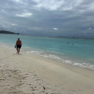 Litt medtatte etter gårsdagen, men etter litt frokost kommer vi oss på land. Ny runde i butikkene og ikke minst innom bakeriet. I dag er planen å gå litt rundt på øya. Går langs med sjøen hvor det er åpent for publikum. Er den ene fine stranden etter den andre, og underveis er det laget i stand hus med tak hvor det er satt opp bord og benker og griller som en kan benytte. Kommer etterhvert frem til Lagoon Beach. En nydelig bukt med sandstrand, palmer og beskyttet av et rev. Er jo nesten utrolig men her er vi helt for oss selv hele dagen.