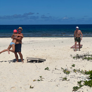 Her møter det oss et lite paradis. Kritthvit sand, noen solstoler vi kan legge oss ned på, et par palmer og en koselig beachbar hvor det spilles lav reggae. Vi spaserer barbeint rundt øya (som ikke tar lang tid!), noen ligger i «skyggen» og leser en bok, vi bader og leker i det turkise vannet, eller tester rom punchen i baren.