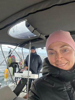 Vi sover begge godt gjennom natten, og nyter roen neste morgen med kaffe og nyheter. Men så plutselig en kraftig lyd ovenifra - en lyd som Skipperen kjenner med en gang - blafrende seil i 15 m/s - Vårt sløreseil på over 90 kvadratmeter har rullet seg ut og slår som en gal i den kraftige vinden. Får Ida raskt opp og prøver å berge seilet, men mye krefter i spill. Heldigvis kommer det hjelp stormende til og vi får til slutt senket seilet ned, og berget på dekk. Dog ikke uten noen skader underveis! Skipperen lærte at et fancy Dynema fall som må slippes fort, skaper mye friksjon! Dessverre store åpne brannsår på innsiden av hele høyrehånden. Men vi reddet seilet, og har masse salver med mer ombord, så dette ordner seg. Litt brå start på en dag vi skulle finne roen, men sånn er nå livet.