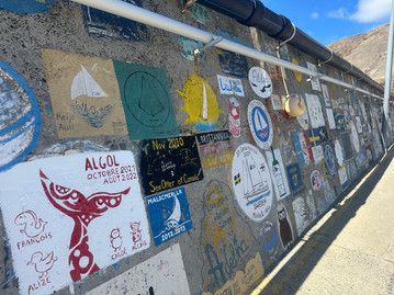 Vi har fått en flott longside plass i havnen. Alltid deilig etter en så lang tur å ha tilgang til så mye vann du ønsker, dusjer og toaletter på land med mer. Det ligger også en annen norsk og en svensk båt der, så rene nordiske bryggen. Havnen er veldig rolig og hyggelig, og langs murene på moloen er det malt ulike logoer fra båter som har besøkt Porto Santo. Så i morgen må vi få kjøpt maling og få Vue Mer logoen opp på muren! Dyrelivet i havnen er også spennende, fra masse europeiske Barracudaer i ulike størrelser, til en svær blekksprut som svømmer omkring!