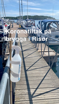 Det er vanskelig å finne plass i Risør gjestehavn, men legger oss tilslutt utenpå en annen båt på utsiden av moloen - vil bli en urolig natt!