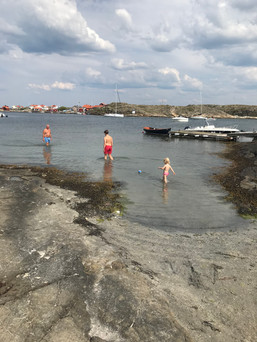 Lunch sammen med Heidi, og kommer oss på badestranden for litt avkjøling i varmen.
