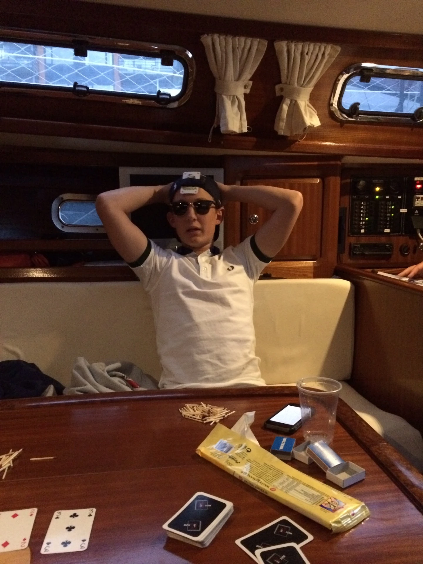 Etter en sen kveld med kortspill, våkner Skipper´n tidlig. Viser seg at Herman har glemt å lukke vinduet helt, så madrass med mer er søkk vått - kjedelig men lar seg ordne - lærdom!