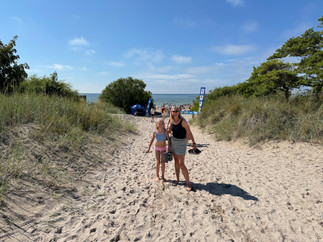 Vi kjører sydover hvor vi kjører gjennom lamme beiter og så endelig til «Tofte Strand». Her er det utrolig mye mennesker, men også en flott strand og masse restauranter med mer. Hele familien kommer seg ut i vannet, og tar seg et Østersjøen bad!