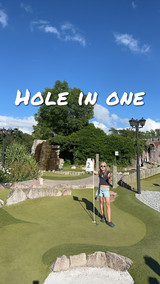 Vi må avslutte strandbesøket for å rekke «Eventyr minigolf» som er stor suksess. Rundturen avsluttes med et besøk på utkikkspunktet på «Högaklint».