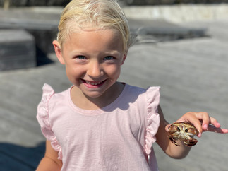 Finner perfekt plass longside og nyter dagen. Blir litt bading, og ikke minst krabbefiske. Ekstra gøy når vi fanger en rødkrabbe blant alle strandkrabbene.
