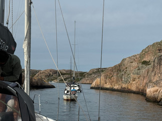 Når vi ankommer Sota kanalen, ser vi at vi ligger 4 båter bak Tom, så blir felles ferd siste stykket.